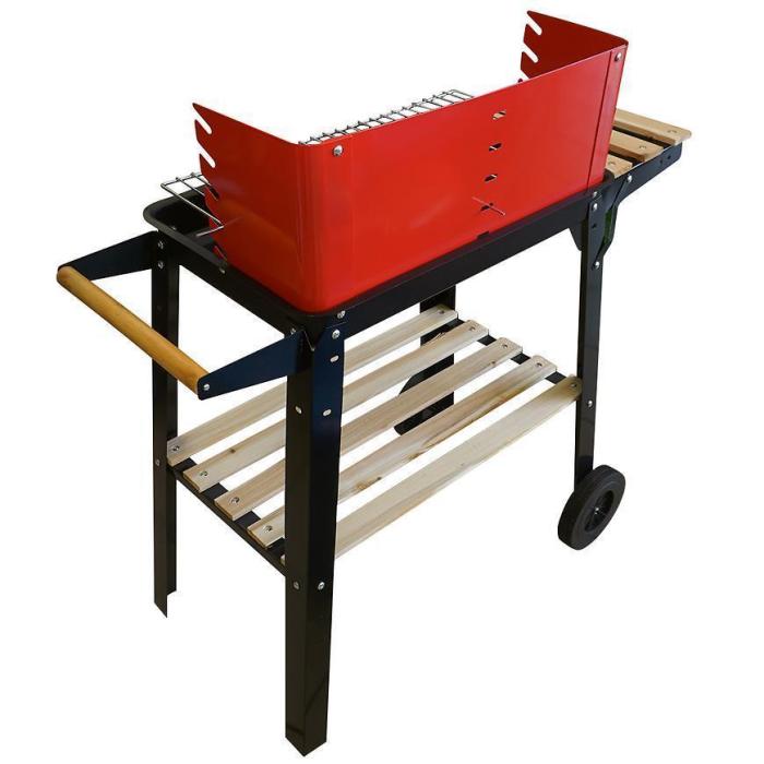 Grill został wyposażony w kółka, co znacznie ułatwi przenoszenie go w inne miejsce. Wysokość głównego grilla jest regulowana.
