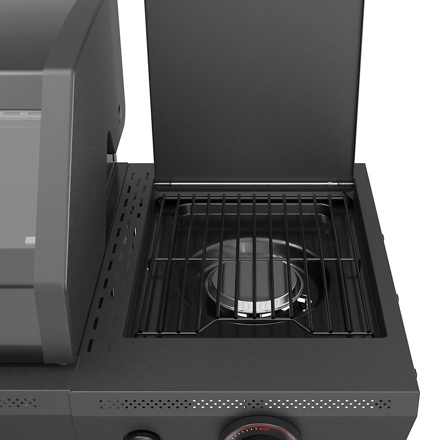 Grill gazowy Mercado De Luxe 5+1 czarny to połączenie funkcjonalności, mocy i elegancji. Dzięki dużej powierzchni grillowania z łatwością przygotujesz posiłek nawet dla większej grupy gości. Palnik boczny dodatkowo zwiększa możliwości kulinarne, pozwalając np. na gotowanie w garnku bez schodzenia z tarasu.