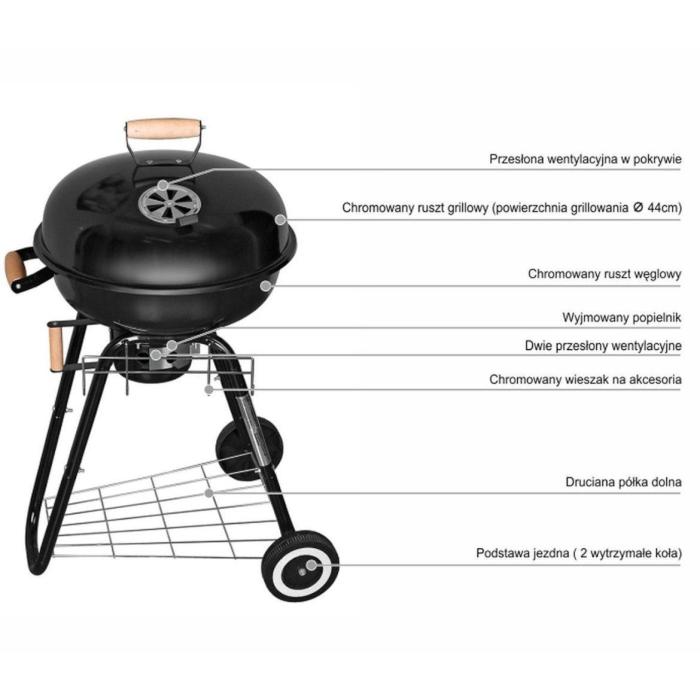 Konstrukcja grilla jest przenośna, dzięki czemu bez problemu można zmienić miejsce grillowania czy schować grill do wiaty czy garażu gdy nie będzie używany.