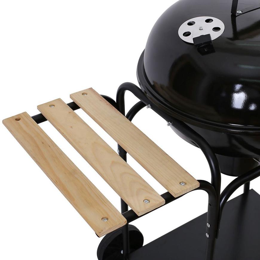 Boczne półki to praktyczne rozwiązanie, które umożliwia wygodne przechowywanie akcesoriów do grilla oraz przygotowywanych potraw, co ułatwia organizację pracy na grillu. Dwa solidne kółka pozwalają na łatwy transport urządzenia, co sprawia, że grill można swobodnie przemieszczać w różnych miejscach ogrodu czy podczas wyjazdów na pikniki.