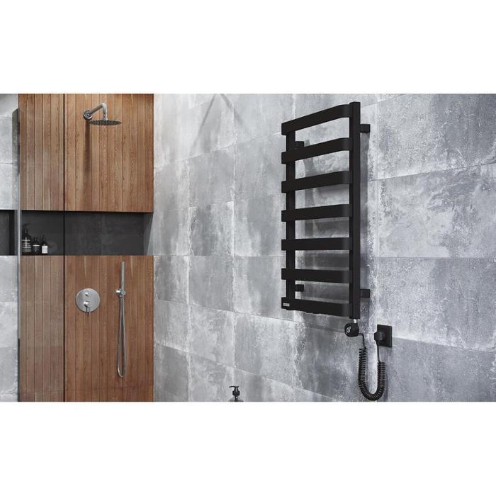 Inspiracje Grzejnik łazienkowy elektryczny Meteor w kolorze czarnym.