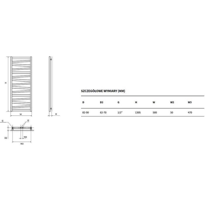 Grzejnik łazienkowy Italic 131 w kolorze szarym metalicznym.