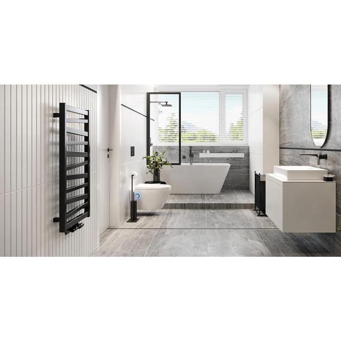 Inspiracje Grzejnik łazienkowy Italic w kolorze czarnym.