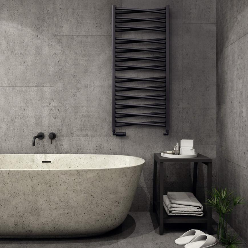 Kolor czarny to wyraz wyrafinowanego smaku i nowoczesności, który bez trudu wkomponowuje się w różnorodne aranżacje łazienkowe. Ten grzejnik nie tylko spełnia swoją główną funkcję, ale również staje się centralnym elementem wystroju, przyciągając uwagę każdego, kto wkroczy do łazienki.