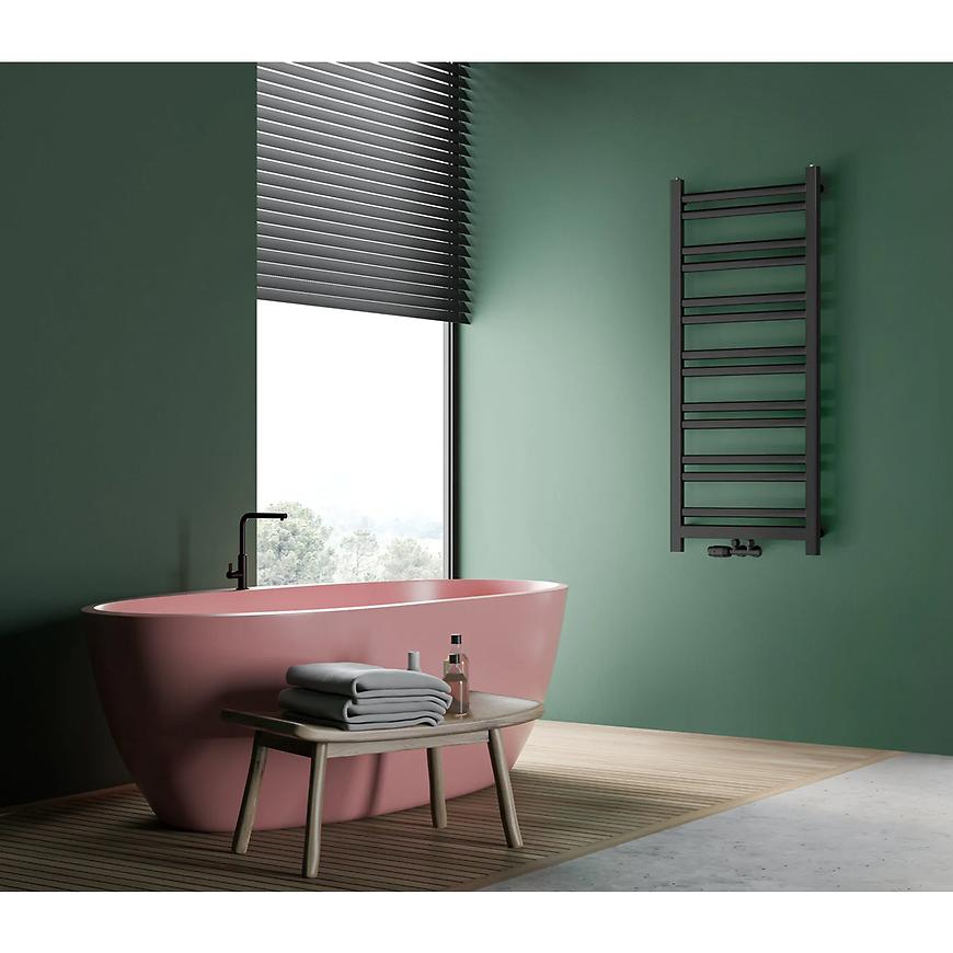 Grzejnik łazienkowy Łezka Retro ŁR 12/40 to doskonałe połączenie funkcjonalności i stylu retro, wprowadzając do każdej łazienki wyjątkowy charakter. Jego elegancki, czarny kolor nadaje wnętrzu subtelnej elegancji, doskonale współgrając z prostotą i surowością aranżacji.