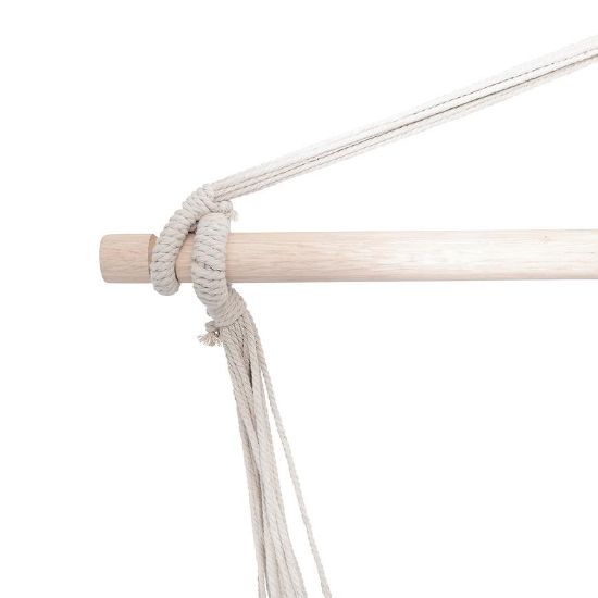 Jego wymiary, 100 x130 centymetrów, oferują odpowiednią przestrzeń do relaksu, pozwalając cieszyć się chwilą błogiego lenistwa na tarasie, w ogrodzie czy na werandzie. Wykonany z tkaniny bawełnianej z domieszką poliestru, hamak ten jest nie tylko miękki i przyjemny w dotyku, ale także odporny na warunki atmosferyczne, co gwarantuje długotrwałą użyteczność.
