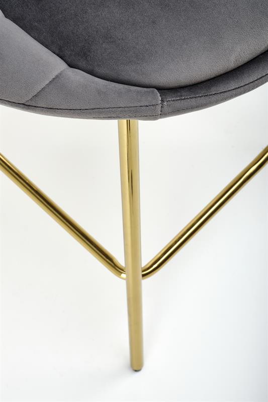 Hoker Alba to wyjątkowe połączenie elegancji, komfortu i nowoczesnego designu, które doskonale sprawdzi się w stylowych wnętrzach. Siedzisko wykonane z miękkiej tkaniny velvet w popielatym odcieniu BLUVEL 14 zapewnia wygodę i przyjemność użytkowania, a chromowana stalowa podstawa w złotym wykończeniu dodaje mu luksusowego charakteru.