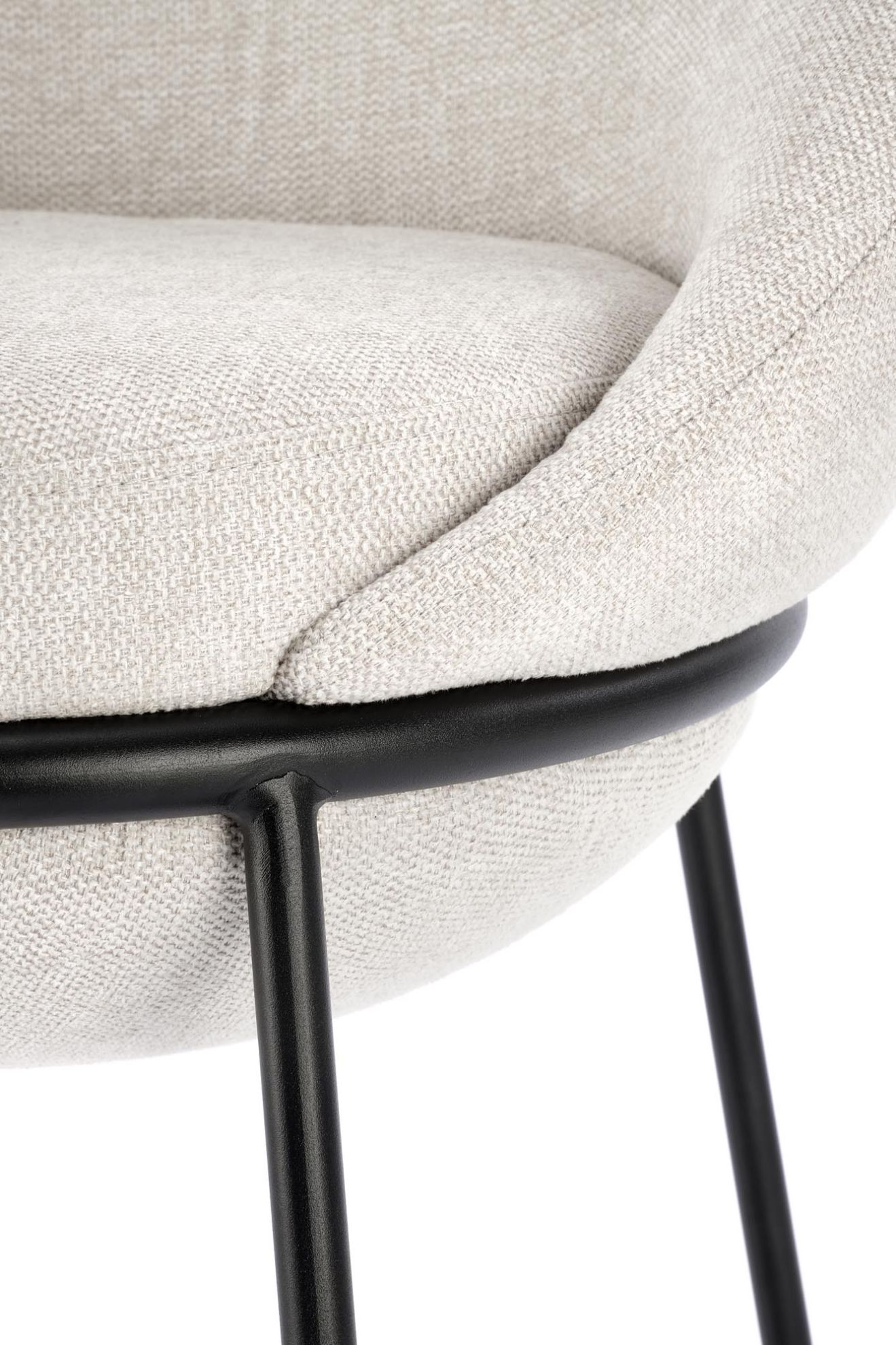 Siedzisko tapicerowane tkaniną jest miękkie i komfortowe, a jednocześnie estetyczne i łatwe w utrzymaniu czystości w kuchennej przestrzeni. Stelaż metalowy malowany proszkowo zapewnia trwałość i stabilność, a brak podłokietników umożliwia swobodne wsuwanie hokera pod blat, zwiększając funkcjonalność w kompaktowej kuchni.