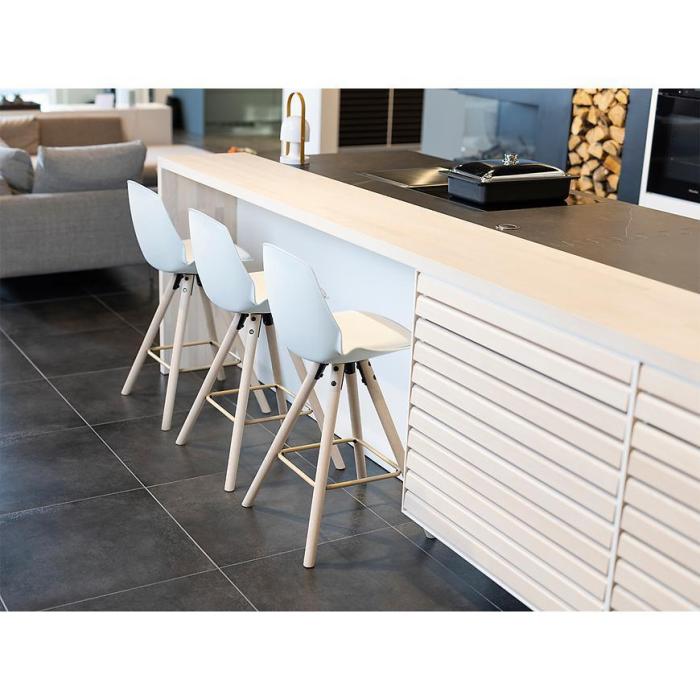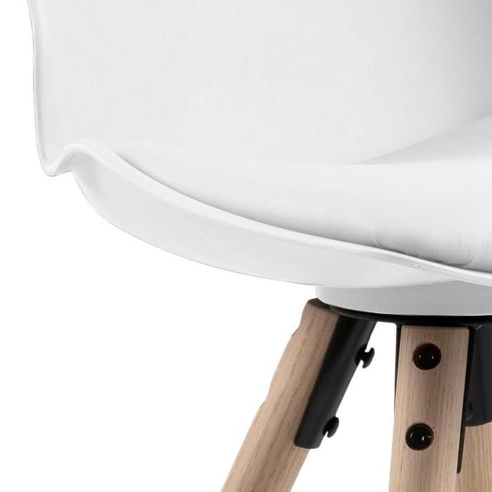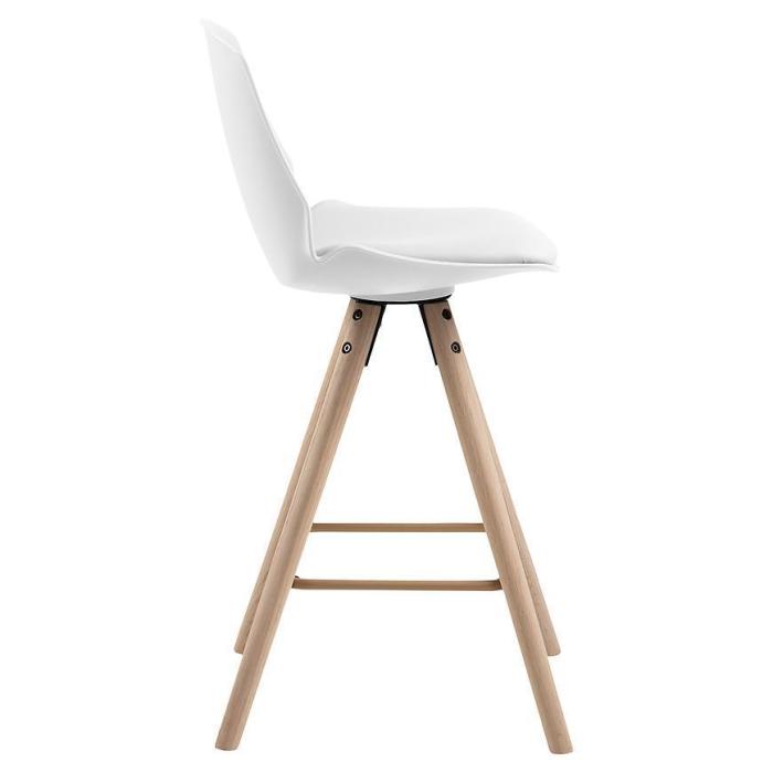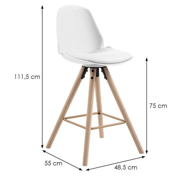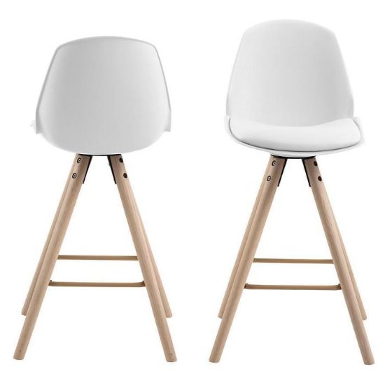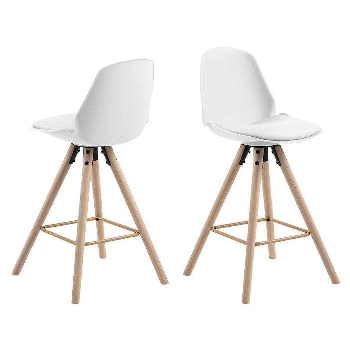Hoker biały Amis to wygodny i ergonomiczny mebel wykonany w stylu nowoczesnym. Styl krzesła wpasuje się w wiele aranżacji wnętrz. Będzie pasowało do kuchni, jadalni, pokoju dziennego oraz innych pomieszczeń. Krzesło wykonane wykonano z drewna i tworzywa sztucznego. Posiada stabilną i solidną konstrukcję. Wysokość do siedziska: 75 cm