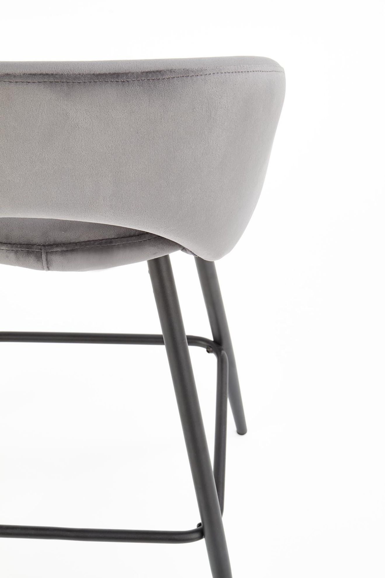 Siedzisko wykonane z miękkiej tkaniny velvet w subtelnym odcieniu popielatym HLR 21 nadaje wnętrzu przytulności i wyrafinowanego charakteru, a stabilna stalowa podstawa malowana proszkowo gwarantuje trwałość i solidność konstrukcji. Wymiary 48 x 49 x 89 cm oraz wysokość siedziska wynosząca 65 cm zapewniają komfort użytkowania, umożliwiając wygodne dopasowanie do standardowych blatów.