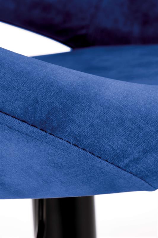 Hoker Edisson to stylowy i funkcjonalny dodatek do nowoczesnych wnętrz. Wykonany z wysokiej jakości tkaniny velvet o gładkiej i przyjemnej w dotyku fakturze, nadaje wnętrzu elegancji i wyrafinowania. Kolor granatoy (BLUVEL 86) w połączeniu z malowaną proszkowo stalą w podstawie zapewnia nowoczesny wygląd oraz trwałość na lata. Hoker oferuje regulację wysokości w zakresie od 78 do 100 cm, co pozwala dostosować go do różnych blatów i wysp kuchennych. Wymiary siedziska szerokość 53, głębokość 48 cm oraz podnóżek na wysokości do siedziska 62-84 cm gwarantują wygodę podczas użytkowania.