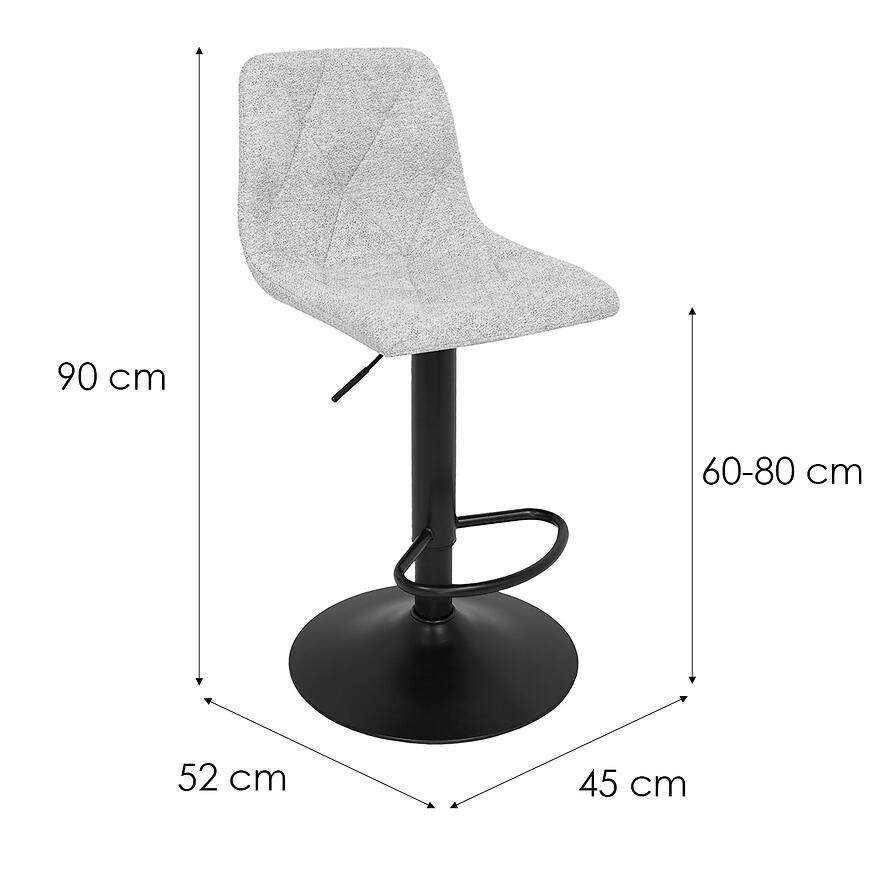 Dzięki kompaktowym wymiarom – 52 cm długości oraz 45 cm szerokości – hoker Figa sprawdzi się zarówno w większych, jak i mniejszych przestrzeniach. Maksymalna wysokość całkowita wynosi 90 cm, natomiast minimalna wysokość do siedziska to 60 cm, co pozwala dopasować go do standardowych blatów kuchennych oraz wysp.