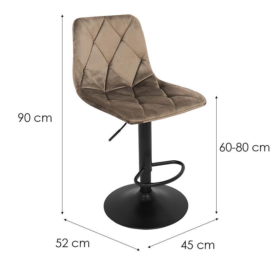 Dzięki kompaktowym wymiarom – 52 cm długości oraz 45 cm szerokości – hoker Figa sprawdzi się zarówno w większych, jak i mniejszych przestrzeniach. Maksymalna wysokość całkowita wynosi 90 cm, natomiast minimalna wysokość do siedziska to 60 cm, co pozwala dopasować go do standardowych blatów kuchennych oraz wysp.