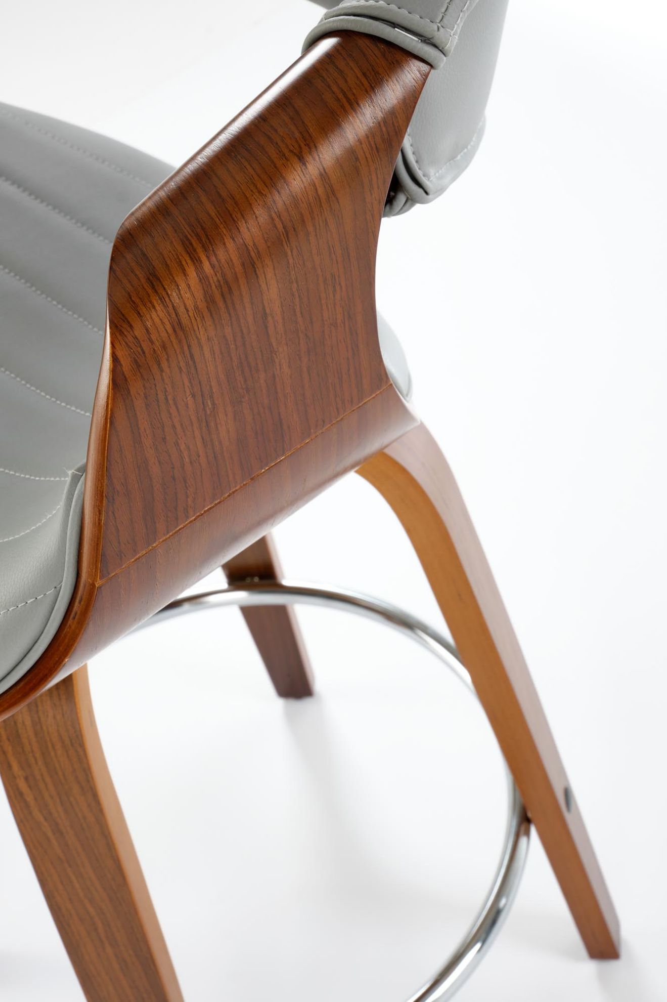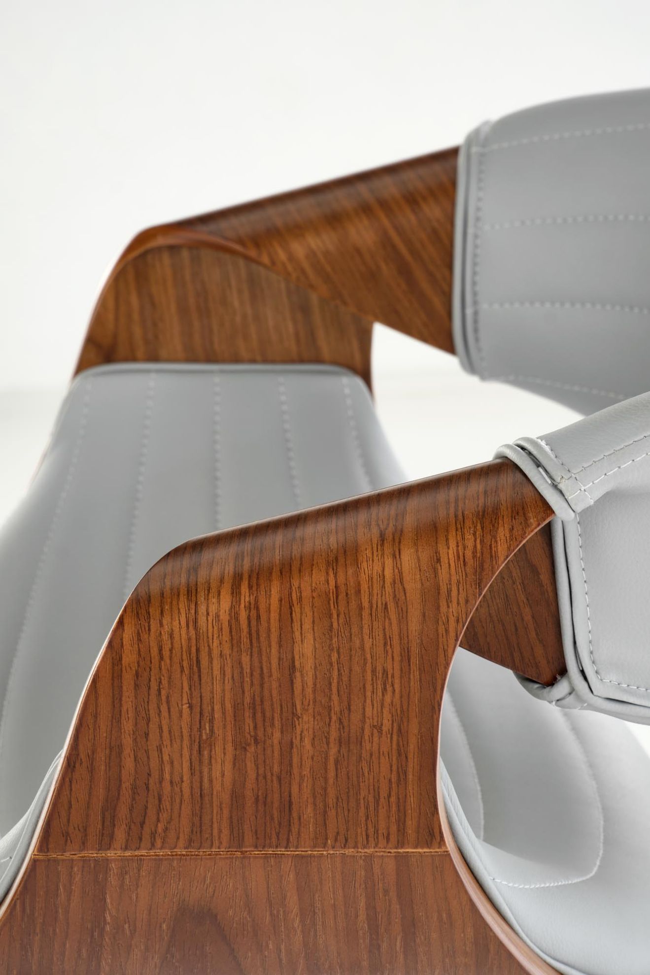 Popielaty kolor siedziska i oparcia kontrastuje z orzechowym wykończeniem nóg i boków, tworząc efektowny i nowoczesny wygląd, który pasuje do wielu różnych aranżacji wnętrz.