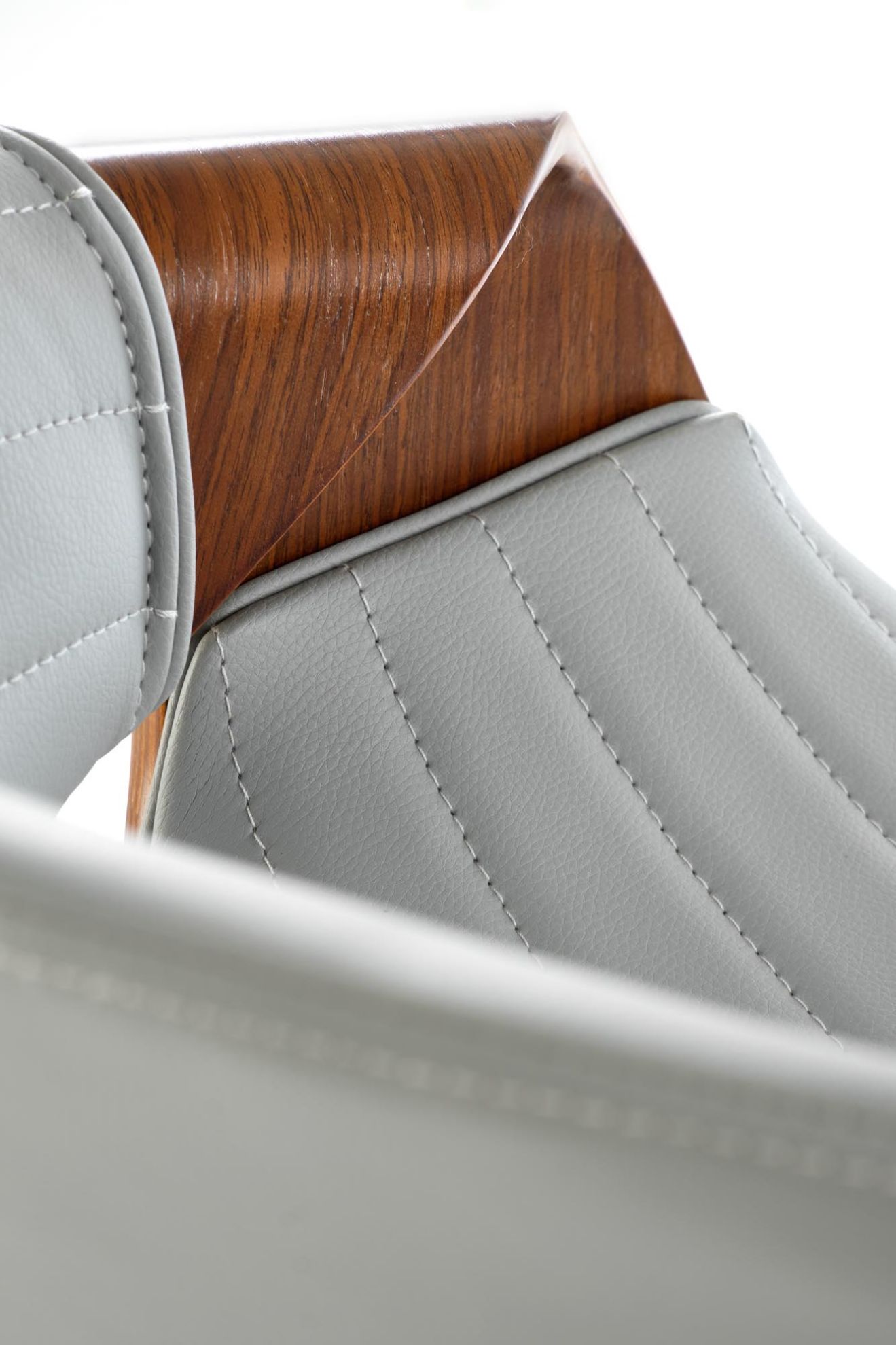 Wykonany z wysokiej jakości materiałów, hoker Loni łączy w sobie trwałą konstrukcję ze stylowym designem. Eco skóra wyściełająca siedzisko zapewnia nie tylko luksusowy wygląd, ale także łatwość w utrzymaniu czystości. Sklejka gięta, wykorzystana do formowania oparcia, dodaje hokerowi lekkości i elegancji, podczas gdy stal chromowana nadaje mu solidności i stabilności.