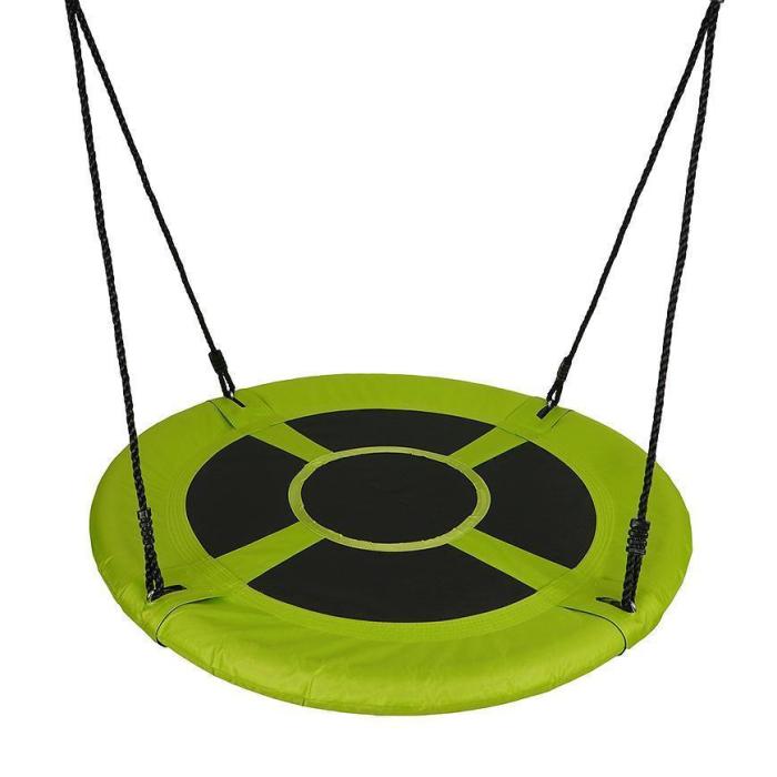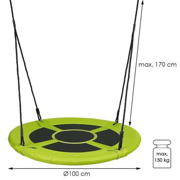 Huśtawka bocianie gniazdo Fun- okrągła, zawieszona na sznurach huśtawka dla dzieci. Huśtawka bocianie gniazdo posiada wytrzymał, stalowy stelaż, przez co użytkowanie jest komfortowe. Jest dostosowana do obciążenia nawet do 150 kg. Materiał zewnętrzny jest szybkoschnący. Wygodne, mocno naciągnięte sznurki nie uwierają i są wygodne. Średnica rurek wynosi 25mm, grubość liny to 10mm, które są regulowane do 170 cm.