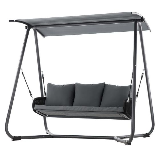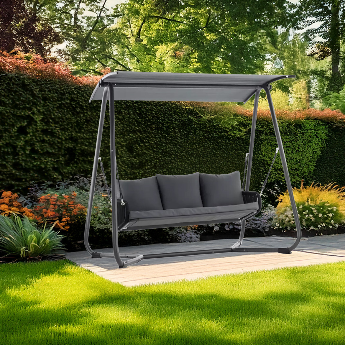 Huśtawka ogrodowa premium w kolorze antracyt to idealne rozwiązanie dla tych, którzy pragną połączyć komfort i nowoczesny design w swoim ogrodzie czy na tarasie. Solidna konstrukcja stelaża wykonana ze stali zapewnia stabilność i wytrzymałość, co pozwala na bezpieczne użytkowanie przez trzy osoby, a maksymalne obciążenie statyczne wynoszące 260 kg podkreśla jej solidność.