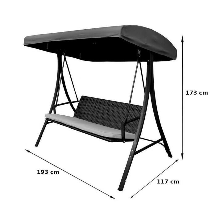 Huśtawka ogrodowa technorattanowa w kolorze brązowym z poduszką to nie tylko elegancki, ale i funkcjonalny element Twojego ogrodu lub tarasu. Zbudowana z solidnego metalowego stelaża oraz wysokiej jakości technorattanu, zapewnia wyjątkową trwałość i odporność na warunki atmosferyczne. Dzięki wymiarom 173 cm wysokości, 117 cm szerokości i 193 cm długości, huśtawka oferuje wystarczająco dużo miejsca dla trzech osób, a maksymalne obciążenie statyczne wynoszące 300 kg zapewnia bezpieczny i komfortowy wypoczynek.