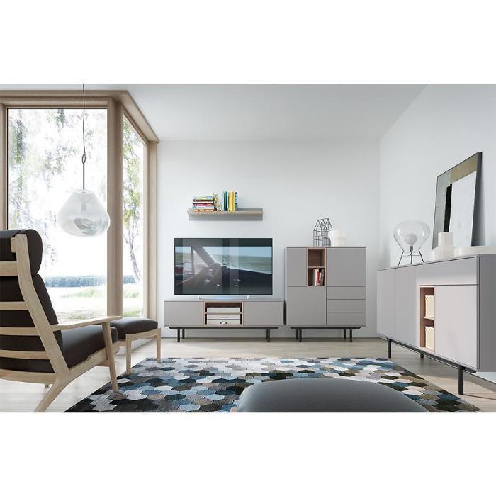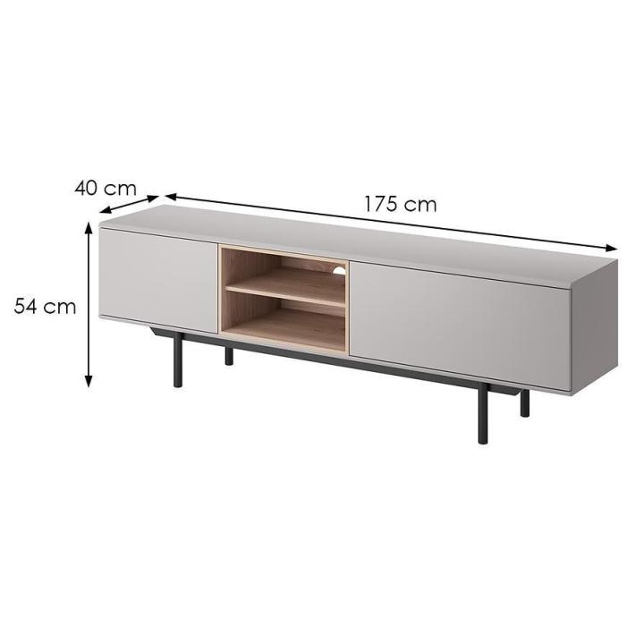 Szafka RTV Inox w kolorze szary/jackson hickory świetnie prezentuje się w nowoczesnych wnętrzach. Doskonale sprawdzi się w każdym salonie lub innym, dowolnym pomieszczeniu. Wykonana jest z płyty wiórowej laminowanej.