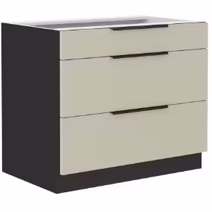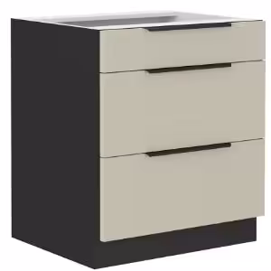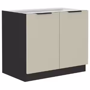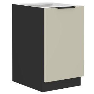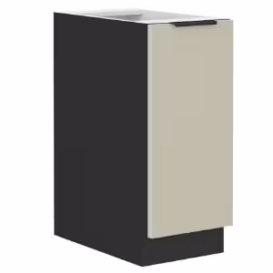 Kuchenne szafki Arona są nie tylko estetyczne, ale także praktyczne. Ich wymiary pozwalają na optymalne wykorzystanie przestrzeni w kuchni. Dzięki konstrukcji z płyty wiórowej laminowanej zarówno fronty, jak i korpusy są solidne i odporne na uszkodzenia. Fronty w kolorze cashmere, wykończone na mat, nadają kuchni elegancki i nowoczesny wygląd, podczas gdy czarne korpusy dodają kontrastu i sprawiają, że meble prezentują się wyjątkowo stylowo.