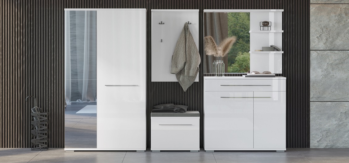 W skład kolekcji Piano wchodzą różnorodne produkty, które pozwalają na kompleksowe urządzenie przedpokoju. Komoda dwudrzwiowa z jedną i dwoma szufladami to doskonałe miejsce do przechowywania odzieży, akcesoriów i innych niezbędnych przedmiotów. Szafa jednodrzwiowa i dwudrzwiowa z lustrem oferują dodatkową przestrzeń na ubrania i akcesoria, a jednocześnie sprawiają, że przestrzeń przedpokoju wydaje się większa i jaśniejsza.