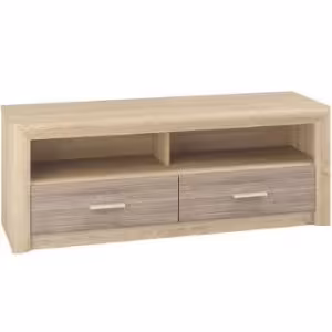 Szafka RTV z dwoma szufladami i półkami jest idealnym rozwiązaniem dla osób, które chcą utrzymać porządek wokół telewizora oraz innych urządzeń multimedialnych. Praktyczny układ szafki zapewnia wiele miejsca na przechowywanie, a matowe wykończenie nadaje meblowi wyjątkowej estetyki.