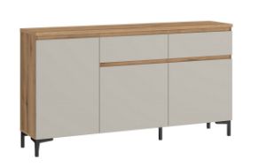 Kolekcja mebli Exeter to doskonałe połączenie funkcjonalności, nowoczesnego designu i wysokiej jakości wykonania, stworzonej z myślą o kompleksowym wyposażeniu pokoju dziennego. Każdy element kolekcji jest wykonany z trwałej płyty laminowanej, co zapewnia solidność oraz łatwość utrzymania w czystości. Całość kolekcji utrzymana jest w harmonijnym zestawieniu kolorystycznym: korpus w ciepłym odcieniu dębu coast evoke, a fronty w nowoczesnym szarym kolorze krzemowym, co nadaje wnętrzu elegancji i nowoczesności.