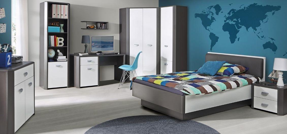 Szary dekor z elementami w białym kolorze nadaje meblom Hey wyjątkowego charakteru. Fronty i korpusy mebli zostały wykończone matowym lakierem, co nadaje im delikatnego wyglądu i zapewnia trwałość. Ten minimalistyczny, ale stylowy wybór pozwala na łatwe wkomponowanie mebli Hey w różne aranżacje pokoju młodzieżowego.