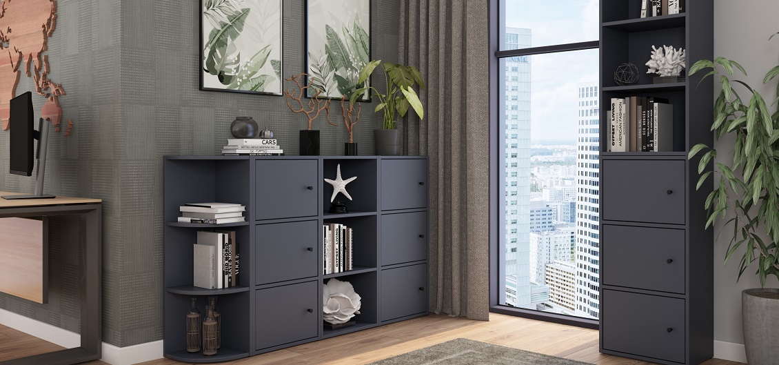 System Kiki dostępny jest w modnym i uniwersalnym kolorze grafitowym. Grafit jest kolorem, który doskonale komponuje się z innymi barwami, co pozwala na łatwe dopasowanie mebli do istniejącej aranżacji wnętrza. Dzięki swojej neutralności, grafitowe meble dodają wnętrzu klasy i stylu, nie dominując przy tym przestrzeni, a jedynie podkreślając jej nowoczesny charakter.
