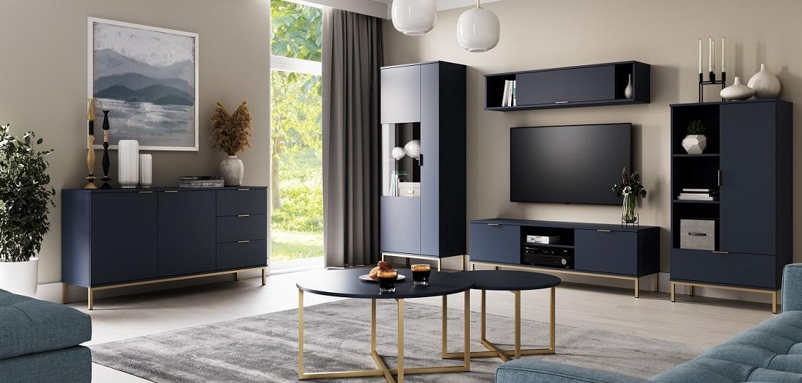 System Palo dostępny w wybarwieniu granatowym. Bryły systemu Palo w wyjątkowy sposób komponują się w każdym pomieszczeniu, zarówno nowoczesnym, jak i tradycyjnym nadając mu niepowtarzalny klimat. Bryły posiadają metalowy stelaż w kolorze złoty beż (oprócz szafki wiszącej). W tym samym kolorze pomalowane są uchwyty. We wszystkich bryłach drzwi otwiera się przy użyciu uchwytów; jedynie lewe drzwi w witrynie WIT 70 otwierane są przy pomocy systemu "push to open". We wszystkich drzwiach użyto zawiasów szybkiego montażu z cichym domykiem. Szuflady posiadają prowadnice dolnego montażu ze spowalniaczem. Grubość płyty korpusu oraz frontów wynosi 16 mm w systemie Palo zastosowano płytę wiórową. Szkło w witrynie WIT70 jest hartowane. W skład systemu wchodzą następujące bryły: komoda 2D3S, komoda 4S, ława 60, ława 80, regał, szafka RTV 1D, szafka RTV 2D, szafka wisząca oraz witryna wysoka.