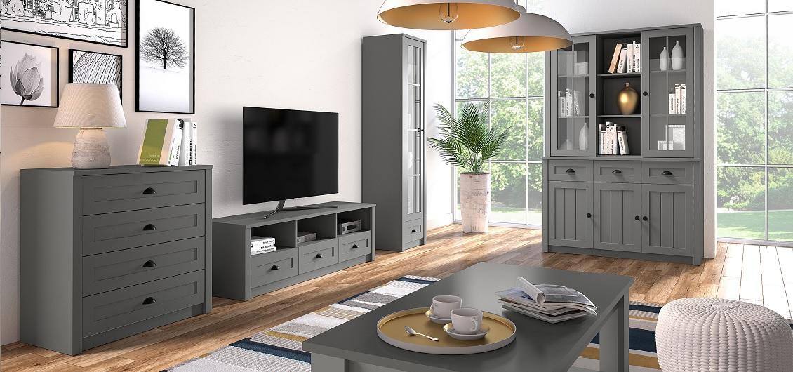 Kolekcja mebli do pokoju dziennego Prowansja łączy w sobie nowoczesny styl z funkcjonalnością, zapewniając doskonałe rozwiązania do Twojego wnętrza. Wykonane z wysokiej jakości płyty wiórowej laminowanej, meble prezentują się solidnie i odporne na uszkodzenia. Dostępność w dekorze szarym dodaje im elegancji i pasuje do różnorodnych aranżacji wnętrz. Fronty i korpusy mebli są wykończone matowo, co nadaje kolekcji Prowansja subtelny, a zarazem wyrafinowany wygląd. To idealne rozwiązanie dla osób ceniących minimalistyczny design, gdzie meble wkomponowują się w otoczenie, nie przytłaczając pomieszczenia. Styl nowoczesny kolekcji z pewnością przyciągnie uwagę miłośników nowatorskich rozwiązań.