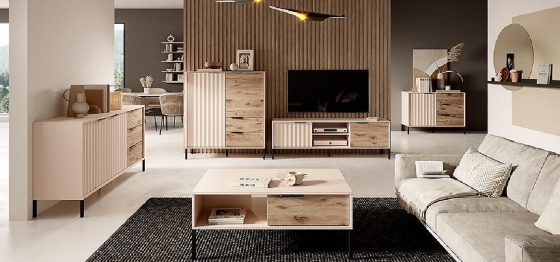 Kolekcja mebli do pokoju dziennego Rave to połączenie nowoczesnego designu z funkcjonalnością, stworzone z myślą o tych, którzy poszukują eleganckich i praktycznych rozwiązań do swojego salonu. Wykonane z wysokiej jakości płyty wiórowej laminowanej, meble z tej serii zapewniają trwałość i łatwość w utrzymaniu, co sprawia, że są one doskonałym wyborem dla każdego domu.