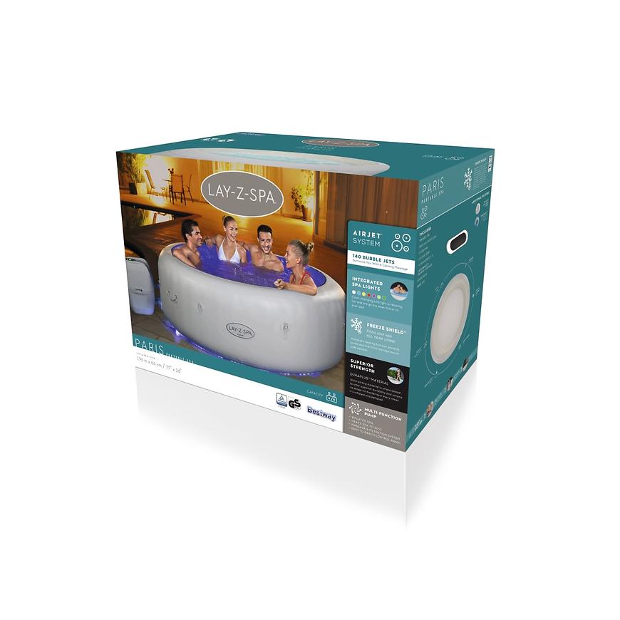 Po wyczerpującym dniu nie ma nic bardziej kojącego niż zanurzenie się w ciepłej, bulgoczącej wodzie na własnym podwórku. Lay-Z-Spa® Paris AirJet™ oferuje właśnie takie doświadczenie, zapewniając kojący masaż dla nawet 6 osób, przy zachowaniu szybkiego i łatwego ustawienia.