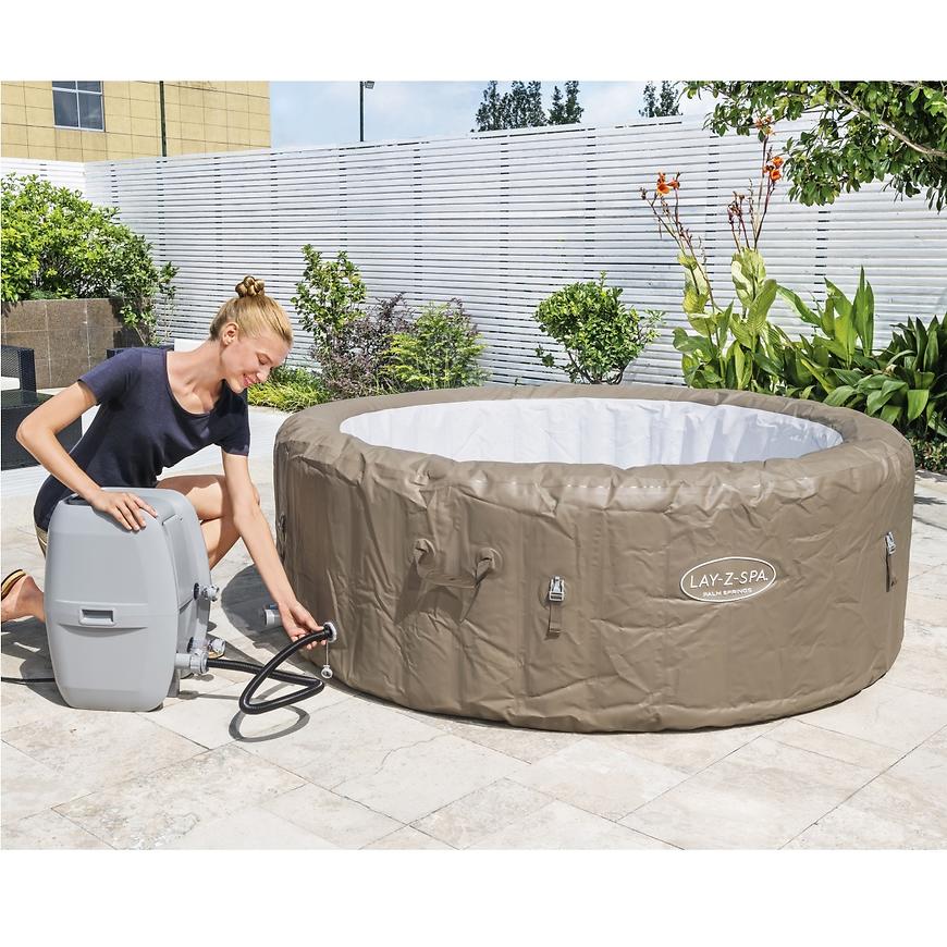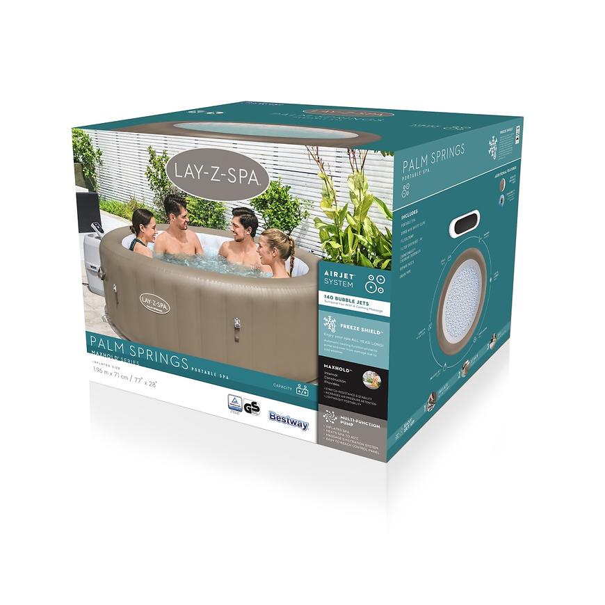 Po męczącym dniu nie ma nic bardziej kojącego niż zanurzenie się w ciepłej, bąbelkowej wodzie na własnym podwórku. Lay-Z-Spa® Palm Springs AirJet™ oferuje właśnie takie doznania, zapewniając kojący masaż dla maksymalnie 6 osób, przy jednoczesnej łatwości i szybkości ustawienia.