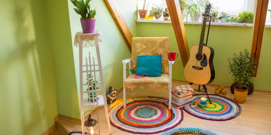 Powierzchnie przeznaczone na kolory to nie tylko ściany lub podłogi, ale także tapicerka narożnika, sofy, wersalki lub kanapy, dodatki dekoracyjne, tekstylia, zasłony, koce oraz dywany.