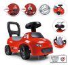 Wygodne siedzenie zintegrowane z praktycznym schowkiem oferuje miejsce na ulubione zabawki, podczas gdy oparcie pełniące funkcję rączki zapewnia stabilność i bezpieczeństwo podczas jazdy. Dodatkowe wypustki chronią przed przypadkowymi wywróceniami, zapewniając spokój podczas intensywnej zabawy.