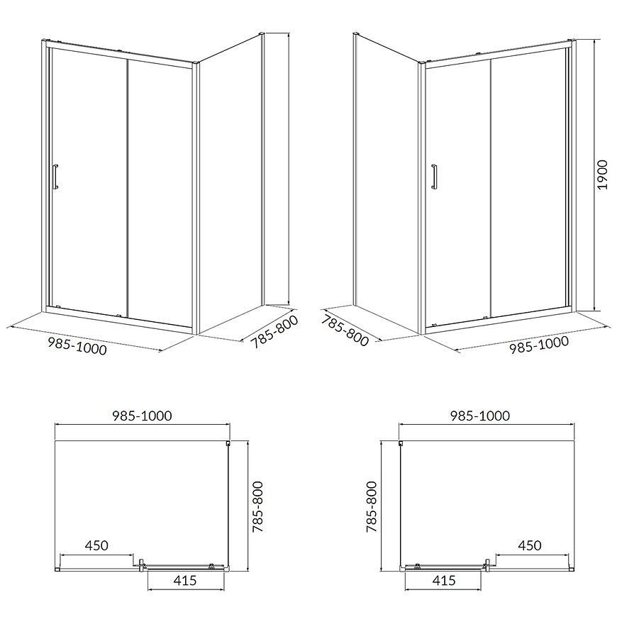 Specyfikacja kabiny Brasco Slide 100x80 chrom