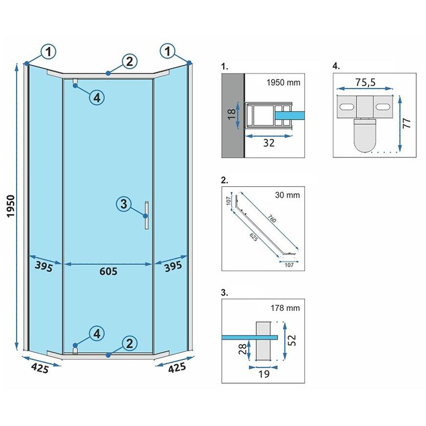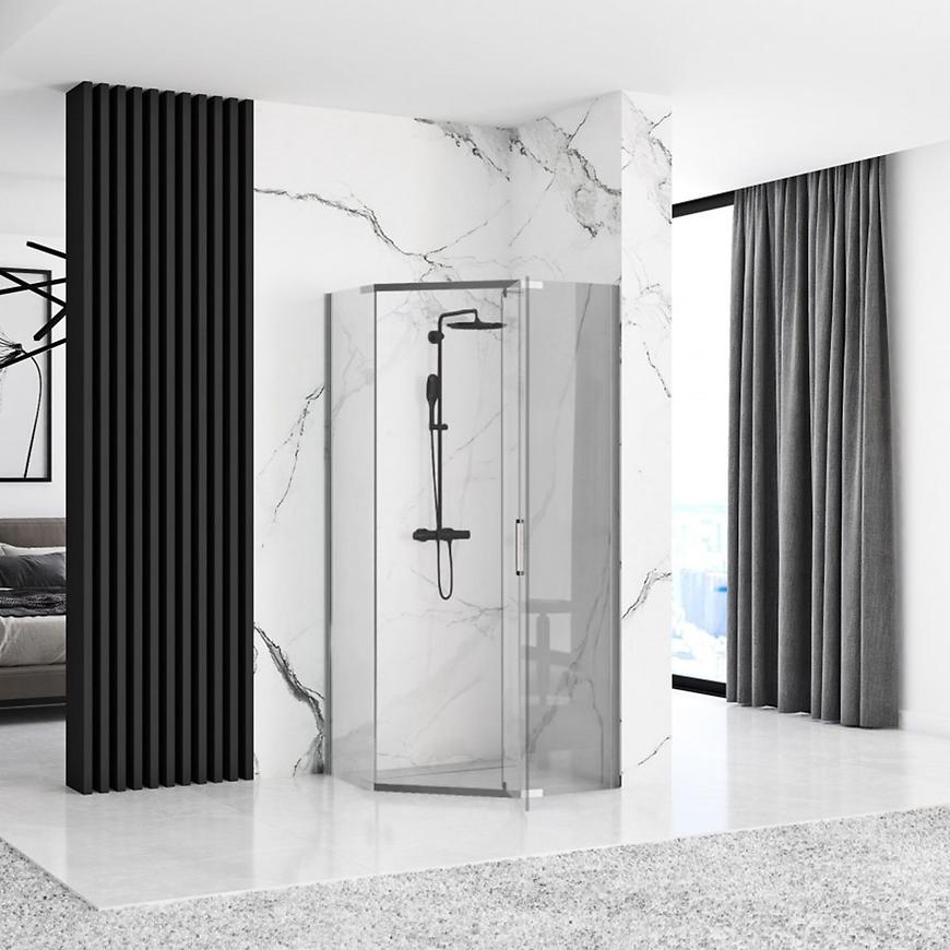 Kabina prysznicowa Axin Rea K8779 90x90x195 chrom to stylowe i funkcjonalne rozwiązanie dla każdej łazienki. Pięciokątny kształt i wymiary 90x90x195 cm pozwalają na wygodne korzystanie, nawet w średnich i większych pomieszczeniach. Transparentne szkło w połączeniu z chromowanym profilem wprowadza do łazienki elegancję i lekkość, a minimalistyczny design łatwo dopasować do nowoczesnych aranżacji.
