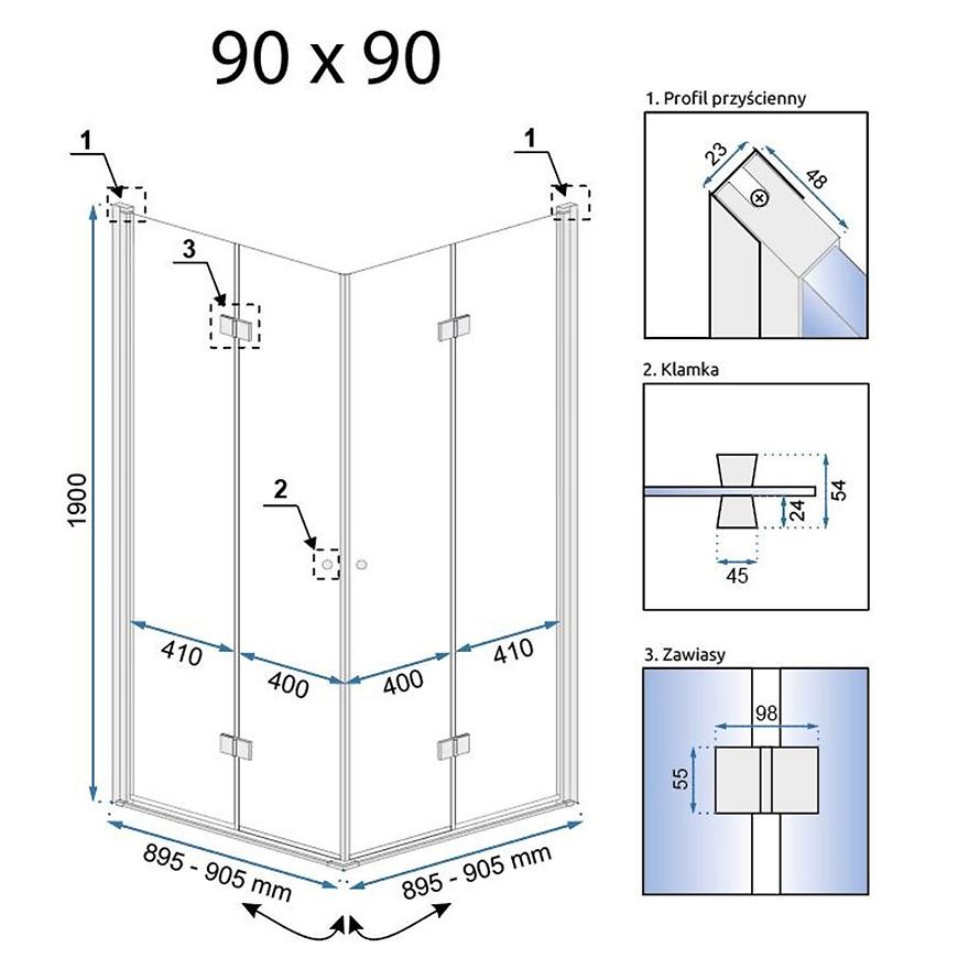 Kabina prysznicowa Fold N2 Rea K9991 90x90x190 chrom to eleganckie i praktyczne rozwiązanie do nowoczesnych łazienek. Jej wymiary 90x90 cm oraz wysokość 190 cm zapewniają komfort użytkowania, a solidna konstrukcja o wadze 56 kg gwarantuje stabilność i trwałość.