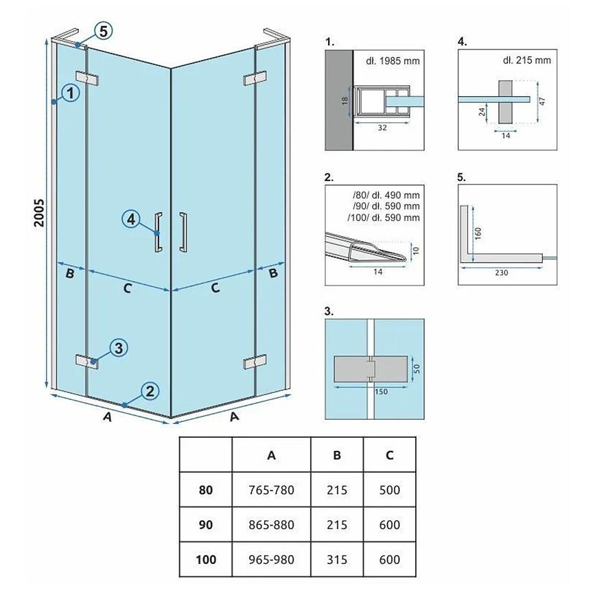 Kabina Hugo Rea K6608 ma wymiary 80x80 cm i wysokość 200,5 cm, co sprawia, że doskonale pasuje do kompaktowych łazienek. Kwadratowy kształt i szkło hartowane o grubości 6 mm zapewniają bezpieczeństwo i trwałość.