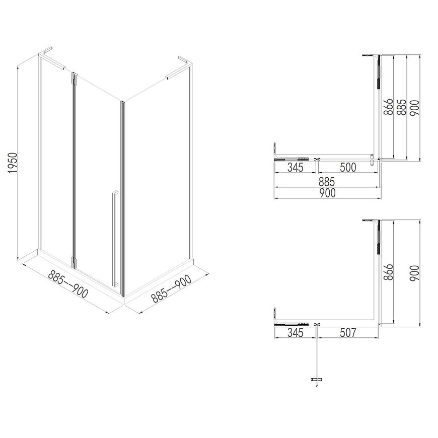 Całkowita wysokość kabiny wynosi 195 cm, co sprawia, że tworzy ona komfortową i wygodną strefę prysznicową nawet dla wyższych użytkowników. Szkło hartowane o grubości 8 mm zapewnia trwałość oraz bezpieczeństwo, co jest niezwykle istotne w łazienkowych warunkach. Hartowane szkło jest odporne na uszkodzenia i stanowi solidną ochronę przed ewentualnymi wypadkami.