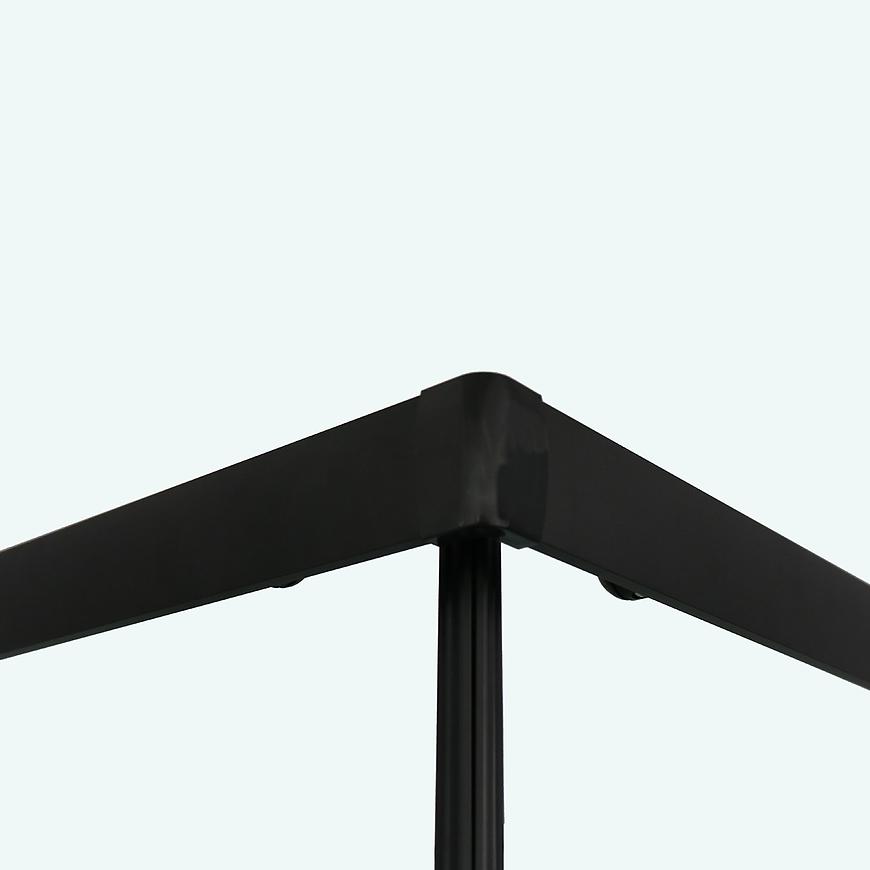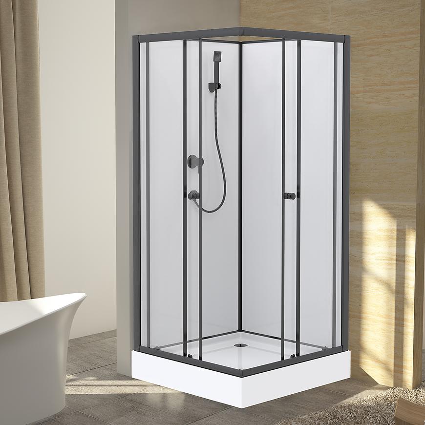 Czarny kolor profilu nadaje kabinie elegancki i nowoczesny wygląd, doskonale komponując się z bezbarwnym szkłem. Otwarty profil sprawia, że konstrukcja jest lekka i przestronna, co dodatkowo podkreśla minimalistyczny design kabiny.