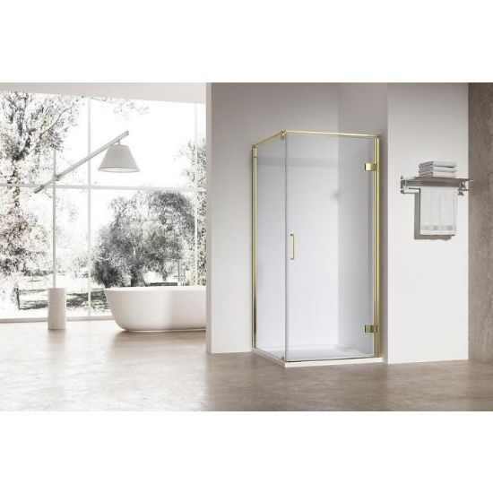 Kabina prysznicowa Maja 90x90x190 GOLD to eleganckie połączenie nowoczesnego designu i praktycznych rozwiązań, które sprawdza się w każdej łazience. Kwadratowy kształt o wymiarach 90x90 cm i wysokości 190 cm zapewnia wygodne korzystanie, a złoty profil w połączeniu z bezbarwnym hartowanym szkłem wprowadza do wnętrza ekskluzywny charakter i efektowny wygląd.