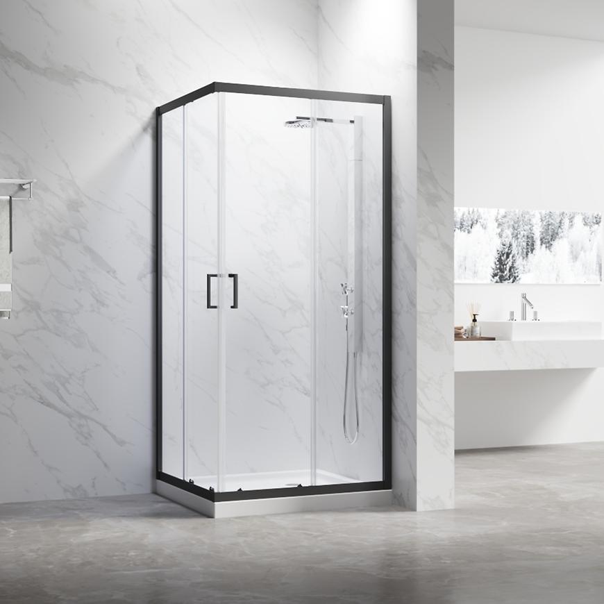 Czarny kolor profilu nadaje kabinie elegancki i nowoczesny wygląd, który doskonale komponuje się z różnymi stylami aranżacyjnymi. Otwarty profil z regulacją na profilu przyściennym zapewnia łatwą instalację i dostosowanie kabiny do indywidualnych potrzeb.