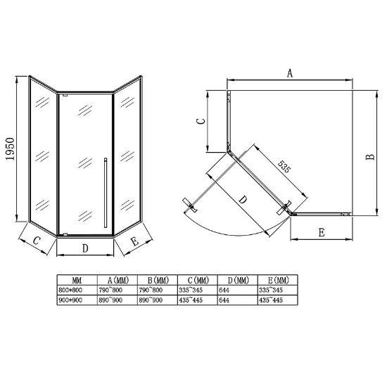 Kabina prysznicowa pięciokątna Light 80x80x195 chrom