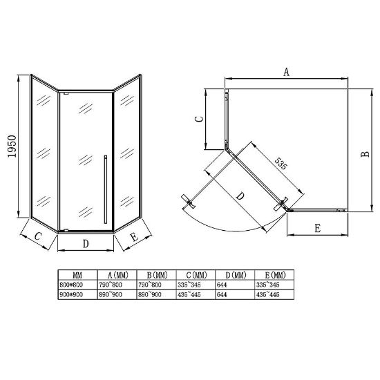 Kabina prysznicowa pięciokątna Light 90x90x195 black