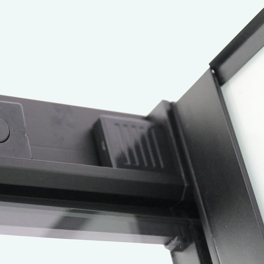 Czarny kolor profilu nadaje kabinie elegancki i nowoczesny wygląd, doskonale komponując się z bezbarwnym szkłem. Otwarty profil sprawia, że konstrukcja jest lekka i przestronna, co dodatkowo podkreśla minimalistyczny design kabiny.