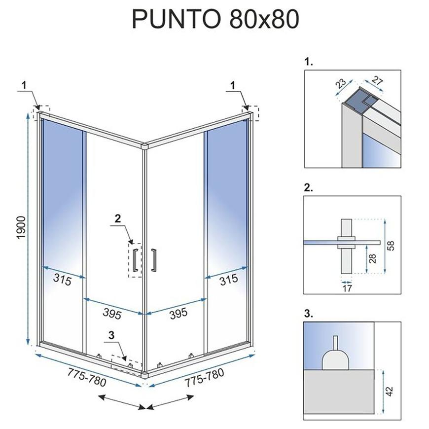 Najważniejsze cechy kabiny Punto Rea K0863 80x80x190 chrom: