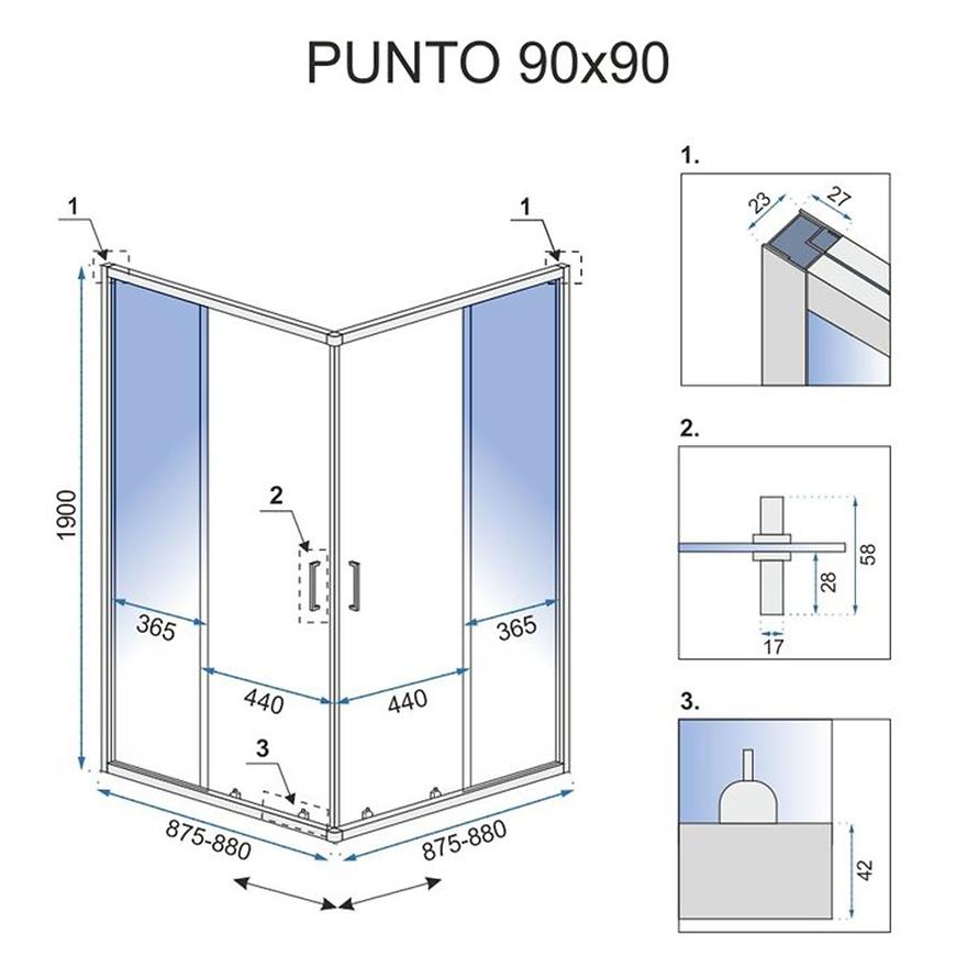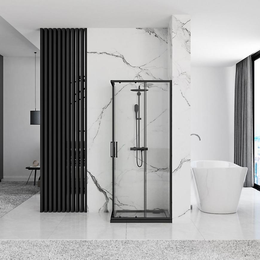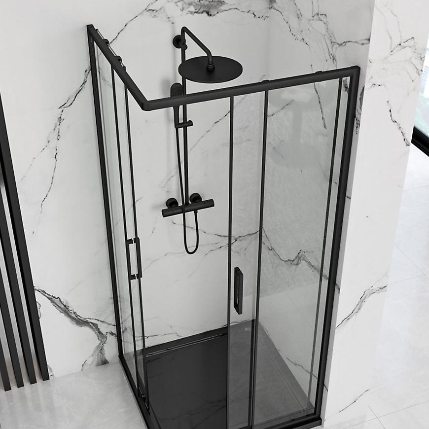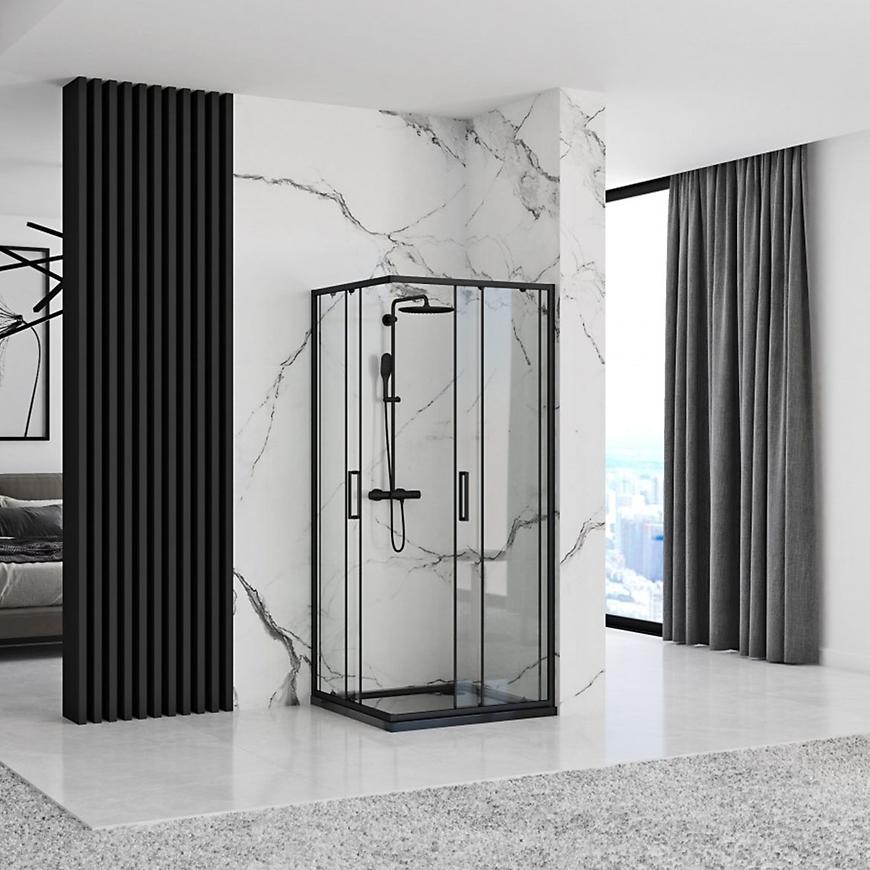 Kabina prysznicowa Punto Rea K4801 90x90x190 black to praktyczne i estetyczne rozwiązanie do łazienki. Wyposażona w 4 mm szkło hartowane oraz czarny profil zamknięty, gwarantuje wytrzymałość i nowoczesny wygląd. Drzwi przesuwne z magnetycznymi uszczelkami zapewniają szczelność i wygodę użytkowania. Regulacja na profilu przyściennym ułatwia montaż. Kabina waży 40 kg, sprzedawana jest bez brodzika i nie posiada powłoki ułatwiającej czyszczenie, co daje elastyczność w aranżacji wnętrza.