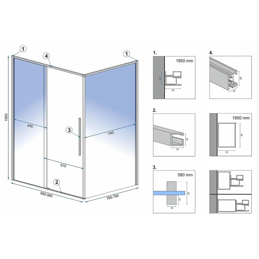 Kabina została wykonana ze szkła hartowanego o grubości 6 mm, co gwarantuje bezpieczeństwo użytkowania. Magnetyczne uszczelki zapewniają szczelne zamknięcie drzwi, a przesuwany system otwierania ułatwia komfortowy dostęp bez zajmowania dodatkowej przestrzeni. Regulacja na profilu przyściennym pozwala na precyzyjne dopasowanie kabiny do nierówności ściany, co zwiększa stabilność konstrukcji. Brak wymaganego brodzika daje elastyczność montażu na podłodze lub dedykowanym brodziku.